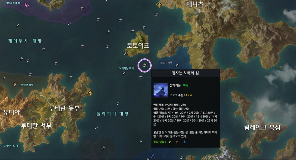 로스트아크 대항해 섬 잠자는 노래의 섬의 모코코 씨앗 위치 알려드립니다.