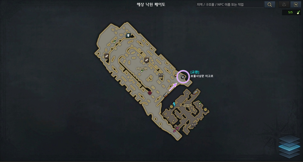 우측에 있는 [교환] NPC 보물사냥꾼 이고르를 찾아갑니다.