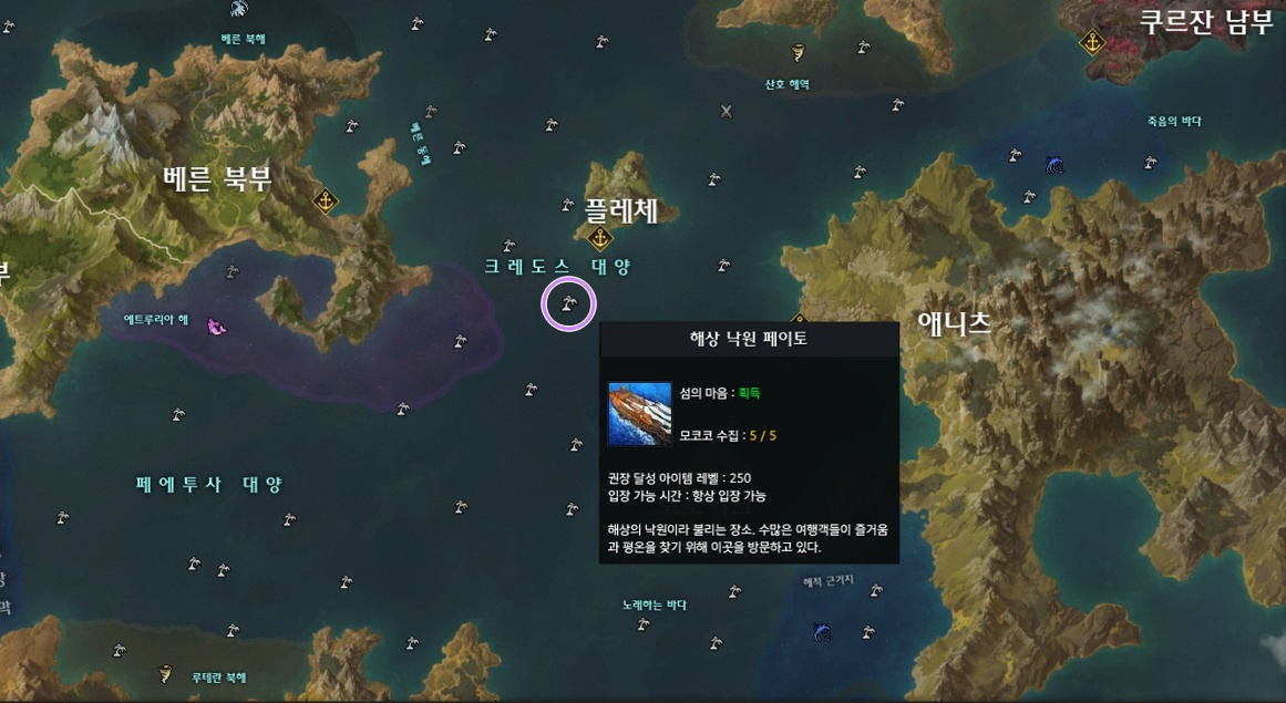 해상 낙원 페이토는 플레체 대륙의 아래에 위치해 있습니다.